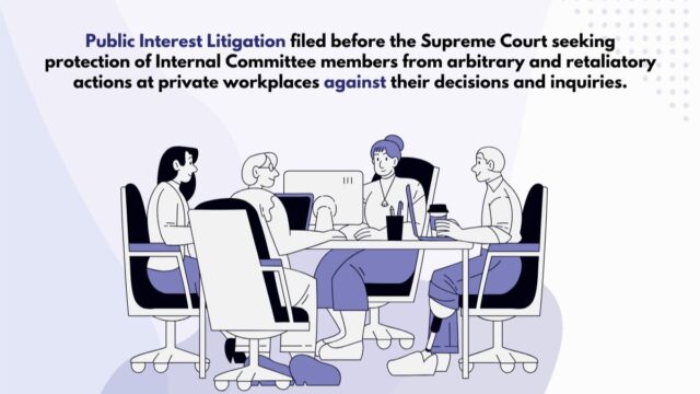 Petitioners filed a Public Interest Litigation (PIL) before Supreme Court of India seeking protection for members of the Internal Committee (“IC”) at private workplaces, for decisions taken by them while conducting inquiries on complaints of sexual harassment at the workplace from arbitrary and retaliatory action against their decisions and recommendations .